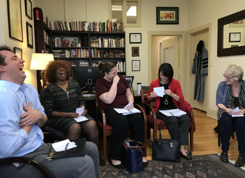 The weekend before Chris passed away, seven of his colleagues visited him and his family at their home. Together with Chris and his partner Adriana, we read some of his favorite poems … and then created one together, on the spot, listening and building on the person before them, three words at a time, going in a circle. One of us began with the words “Here we are …” and Chris, the last person in the circle, offered the final three words.